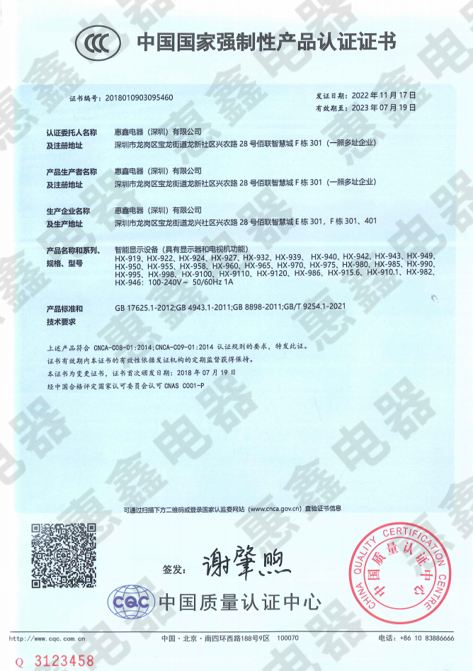 同年我们的产品荣获中国国家强制性产品认证证书(3C证书),让您对我们的产品更放心