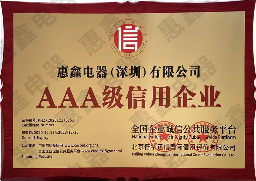 今年我们荣幸获得了全国3AAA级信用企业及全国重合同守信企业